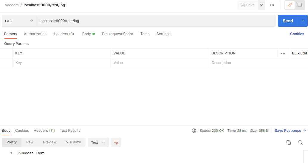 postman으로 localhost:9000/test.log 했을 때는 정상적으로 작동이 되어서 서버 잘 실행하고 db연결이 잘 된줄 알았는데 데이터베이스 연결에 실패하였다고 뜬다