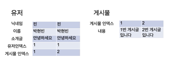 만약 유저 테이블에 게시물 인덱스를 넣는다면
