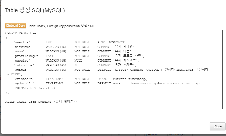 마우스 커서를 맨 앞에 두고 실행하면 table을 생성할 수 있다!
