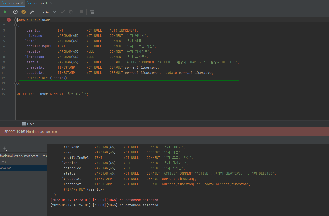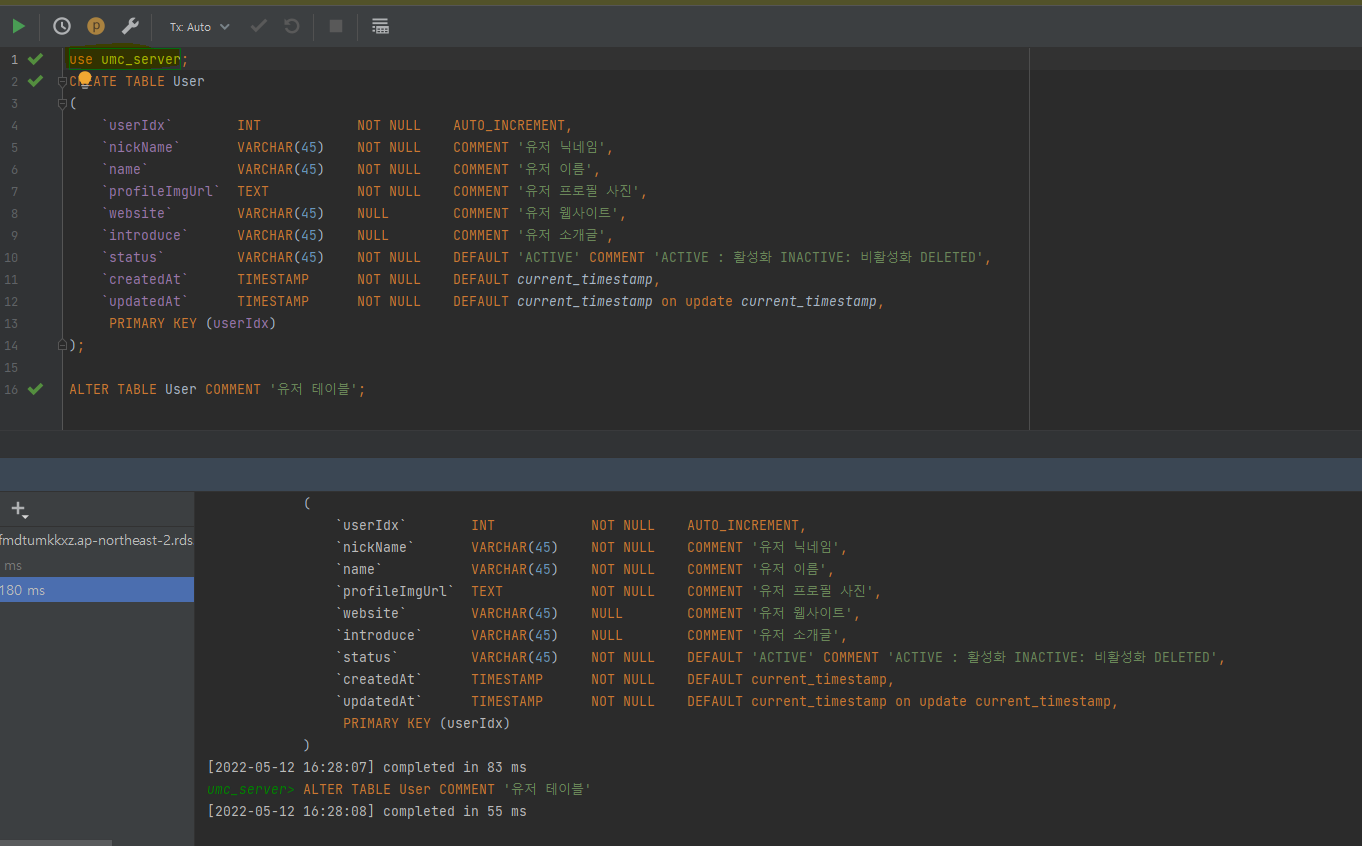 [Server 5주차] RDS와 Datagrip 연결하기/Datagrip table 생성 본문